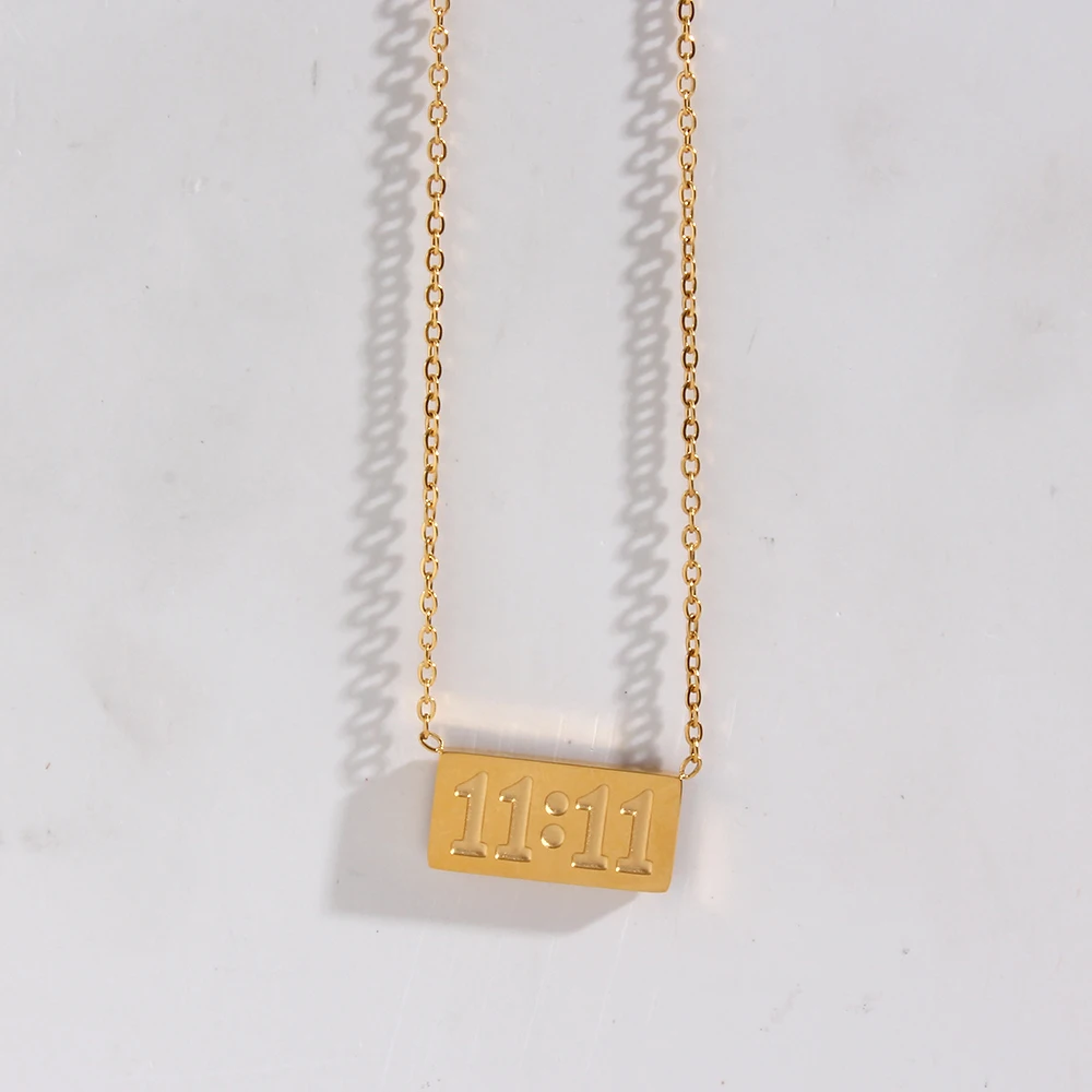 11:11 Rectangle Pendant Plate Necklace Fine Polished Stainless Steel 18K Gold Plated Necklace Meaningful Number Jewelry