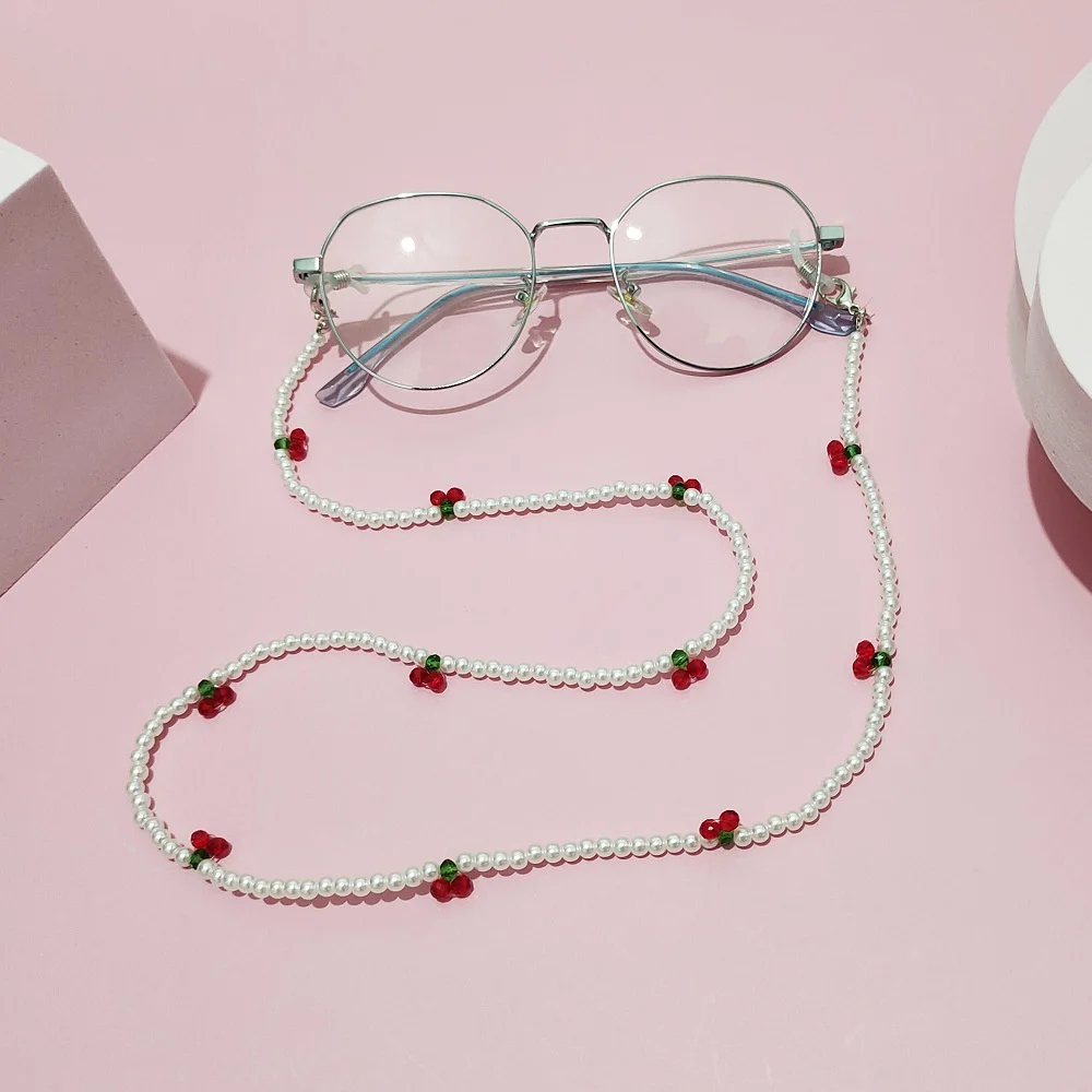 Cadena de máscaras para gafas de sol, cadena de cerezas para mujer, cordones de Metal Retro Para gafas de sol, soporte de cordón