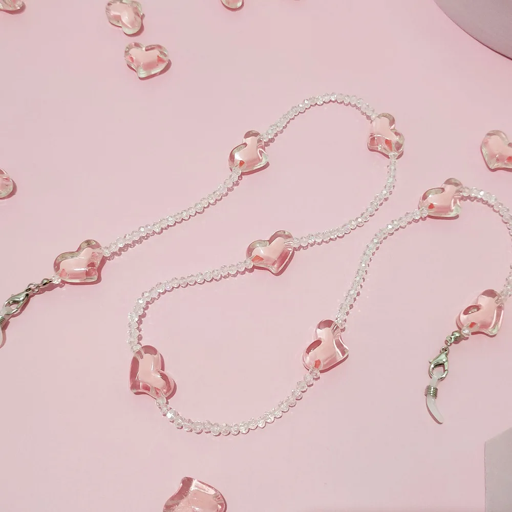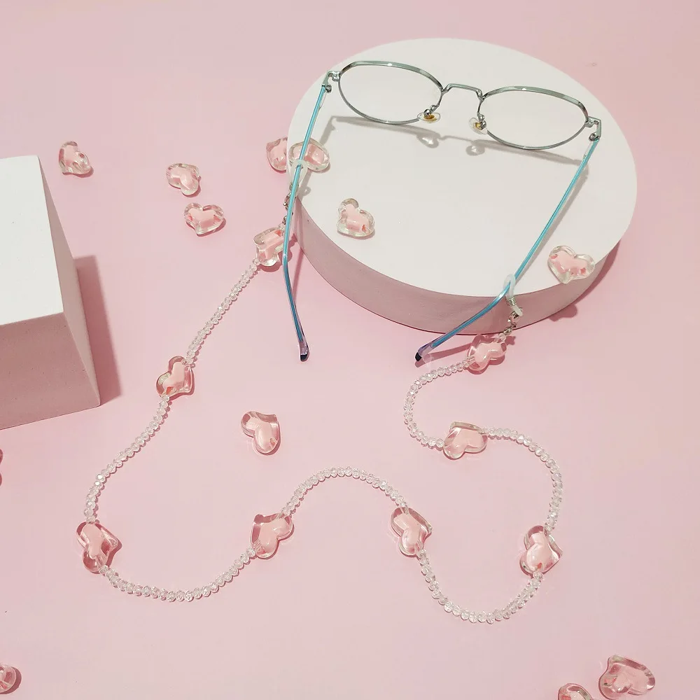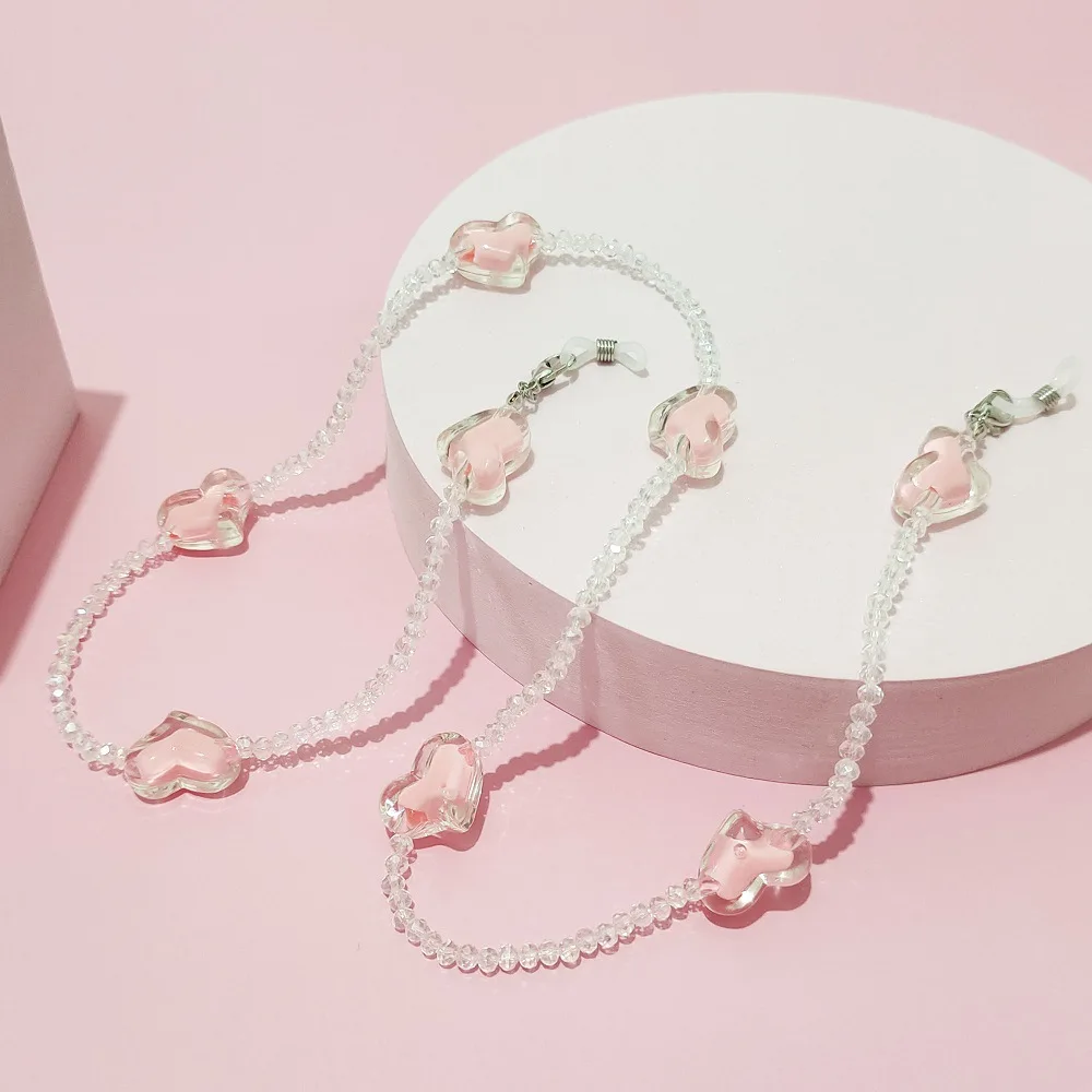 Cadena para gafas de sol de cristal para mujer, cadena de cuentas transparente, romántica, collar con cordón, joyería