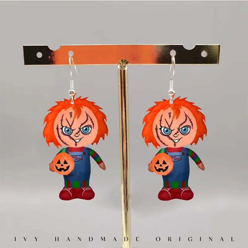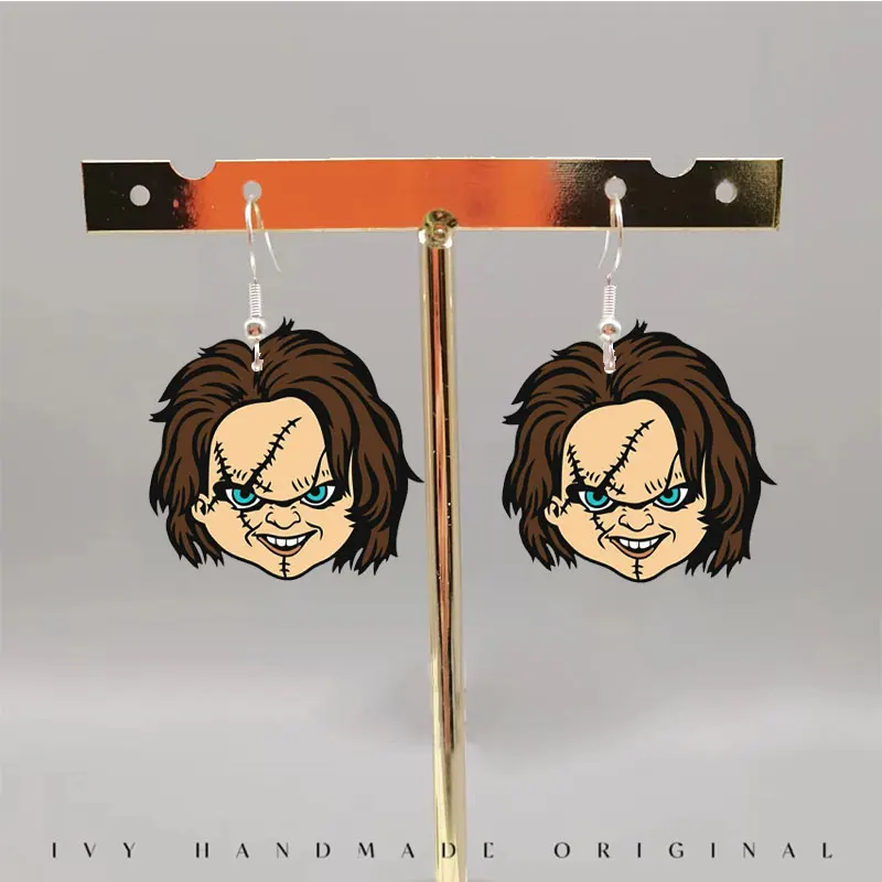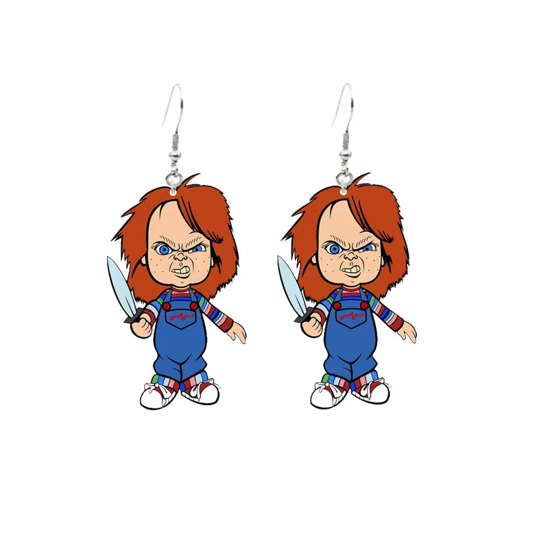 Chucky-pendientes colgantes de acrílico para niños y adultos, bonitos pendientes colgantes de Chucky, regalo personalizado para fanáticos