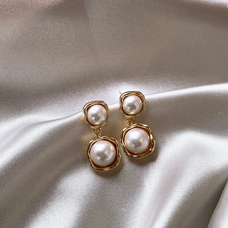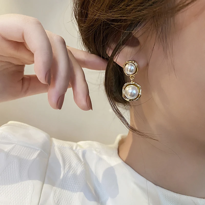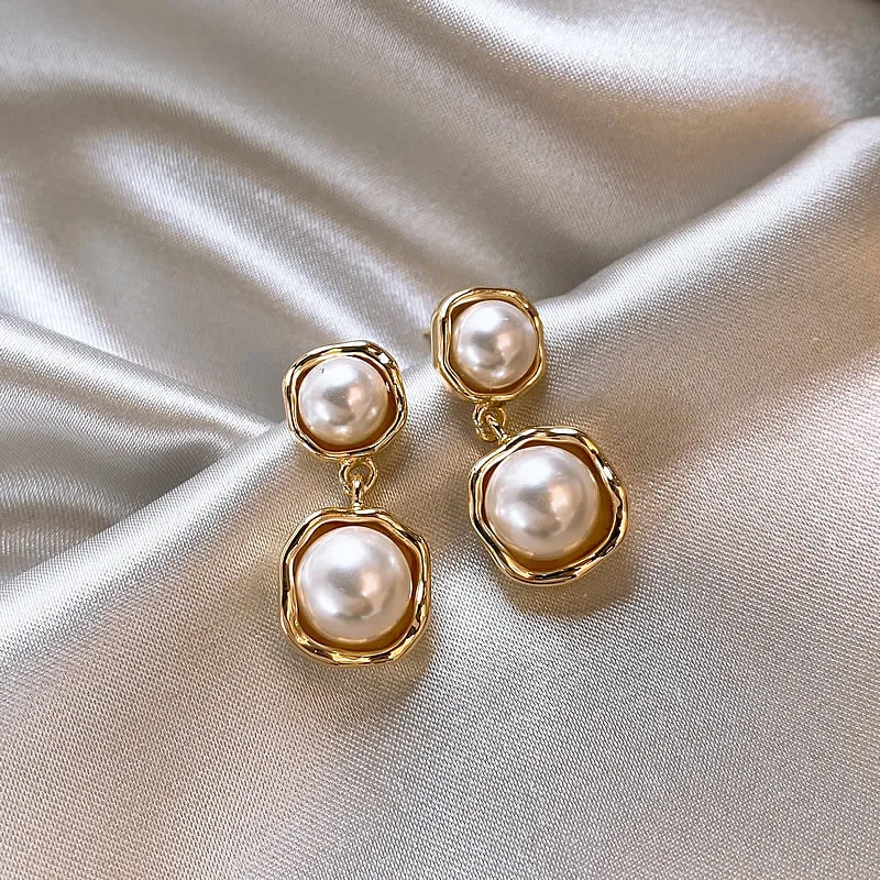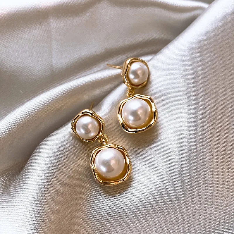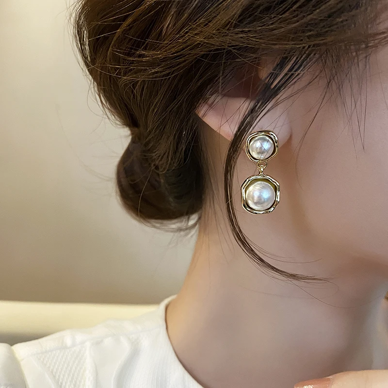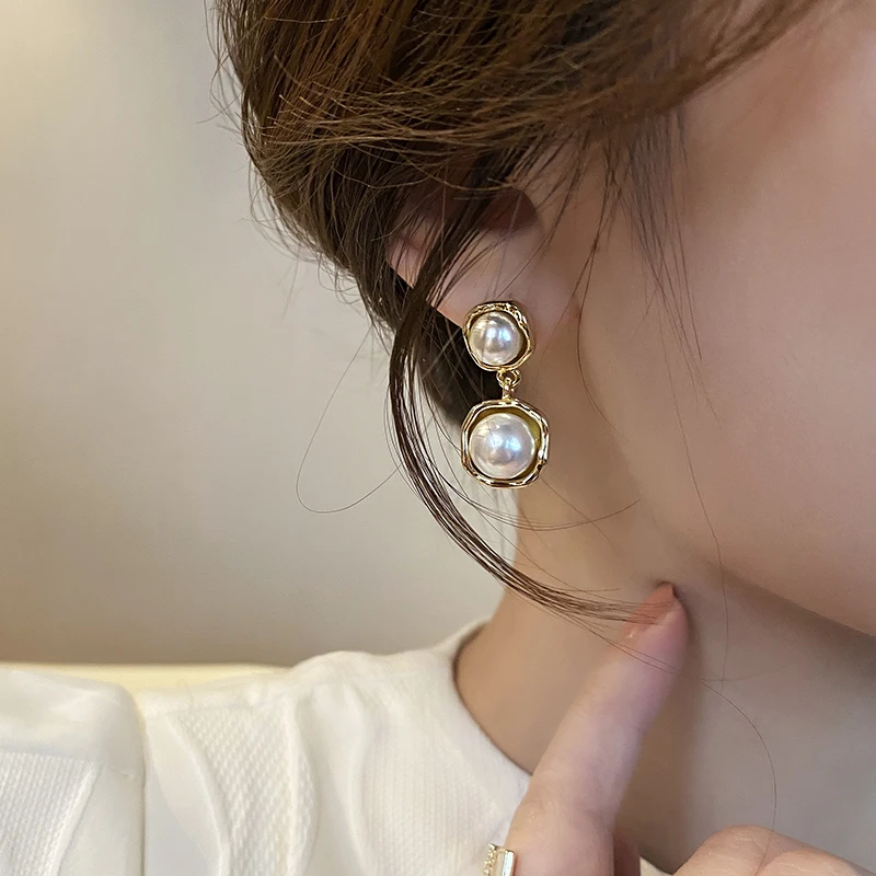 Pendientes colgantes con forma geométrica de perla Hepburn Retro para mujer, joyería de moda.