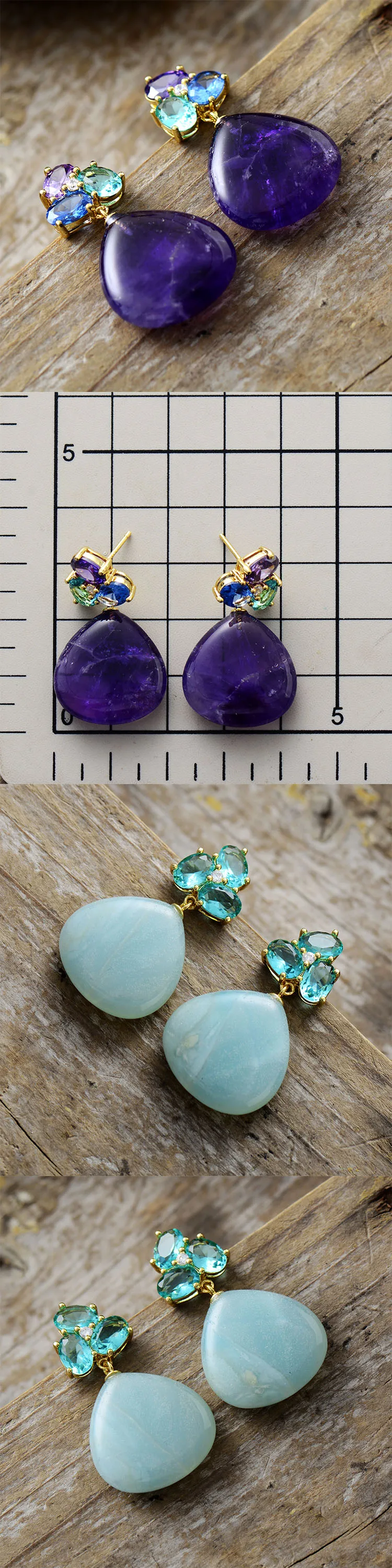 * Material: amatista, amazonita, Ojo de Tigre, latón.