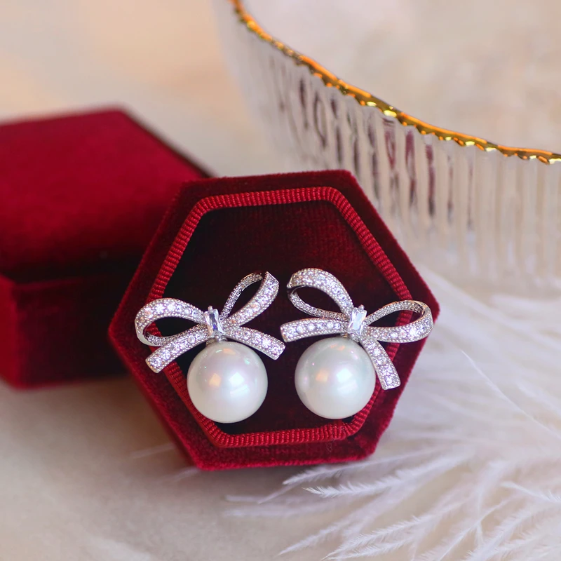 Pendientes de tuerca de circonia cúbica para mujer, joyería clásica de fiesta de boda, pendientes de perlas de simulación dulce, gran oferta
