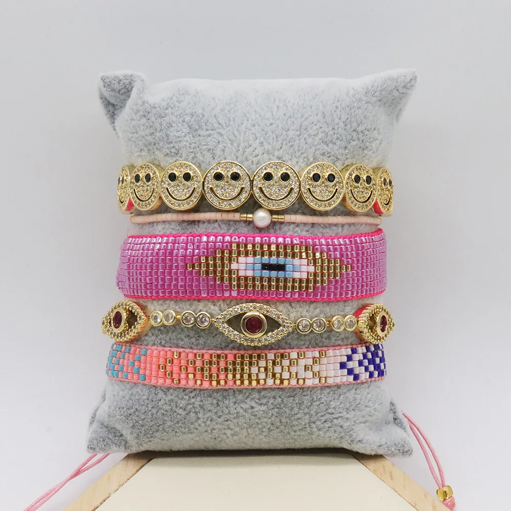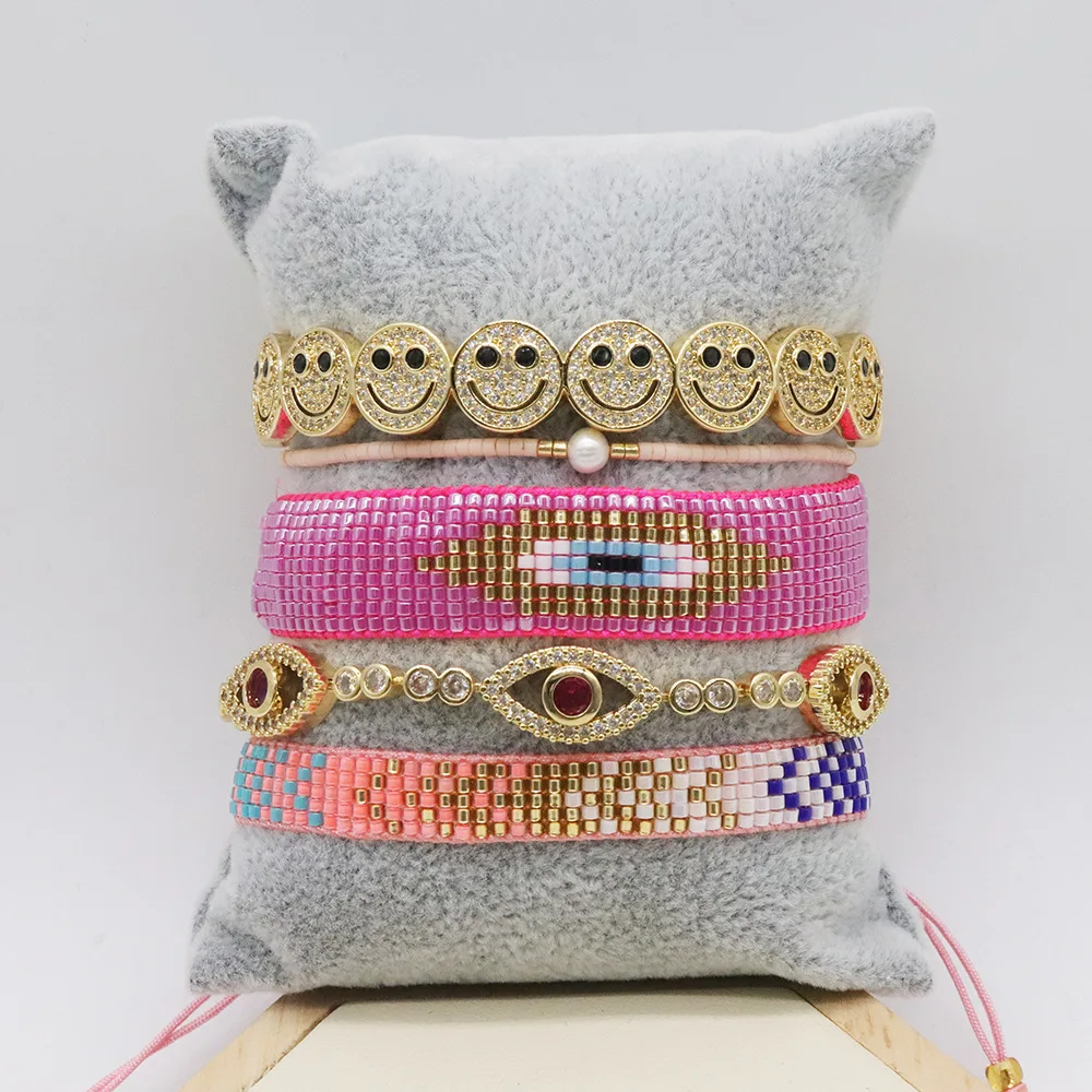 Traje de pulsera de cuentas de arroz tejido a mano ojo cara sonriente circón moda simplicidad Bohemia ajustable pulsera de cuentas Unisex