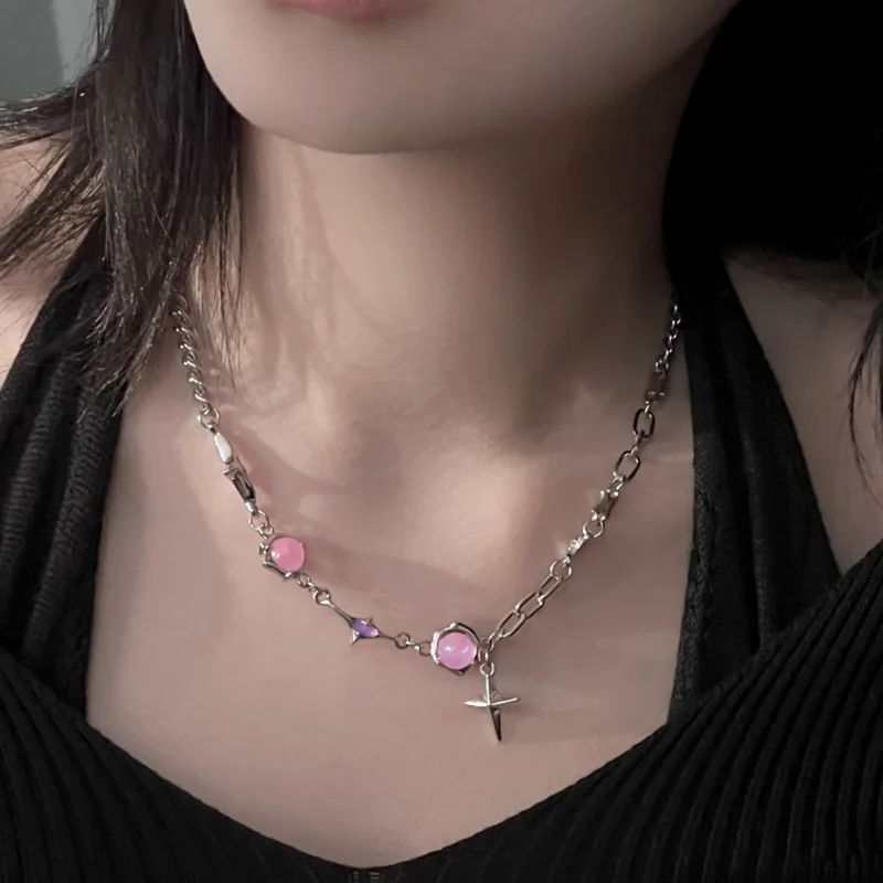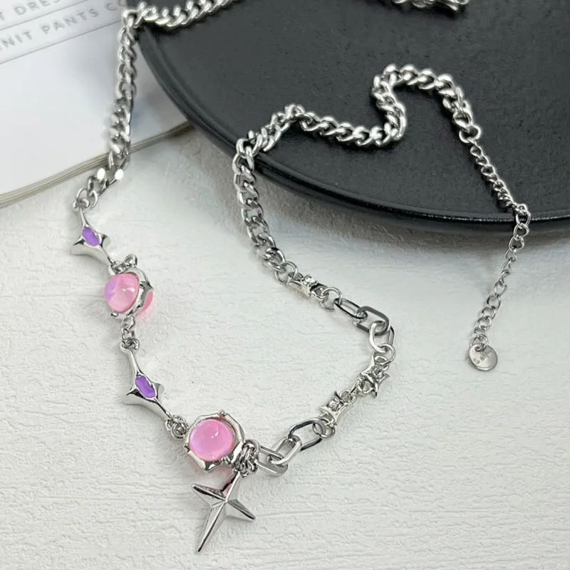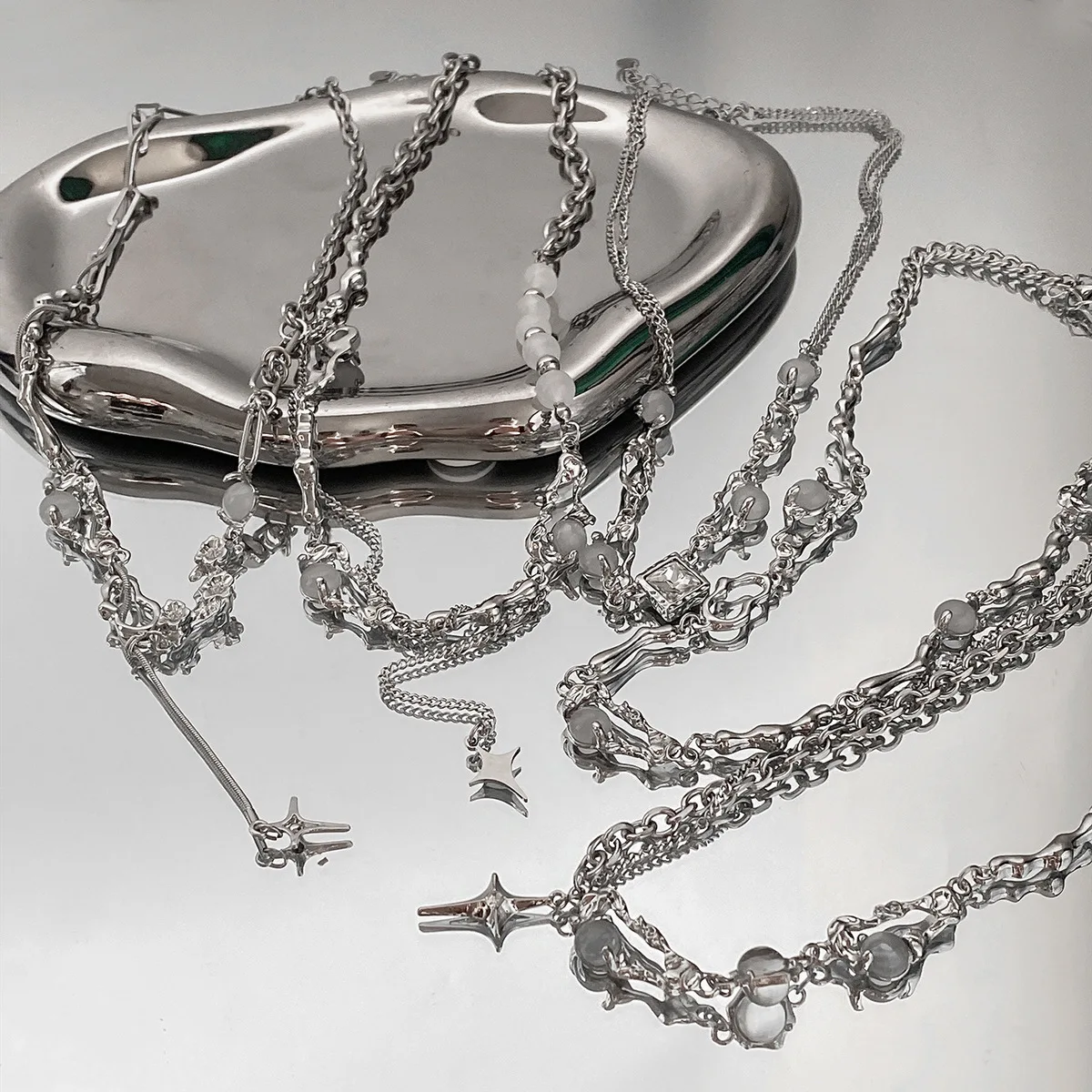 Collar de ópalo de Color plateado , joyería Irregular de estrella de Lava líquida, regalo de cumpleaños, venta al por mayor