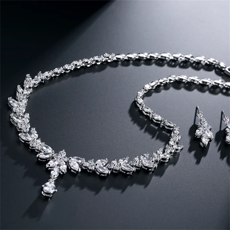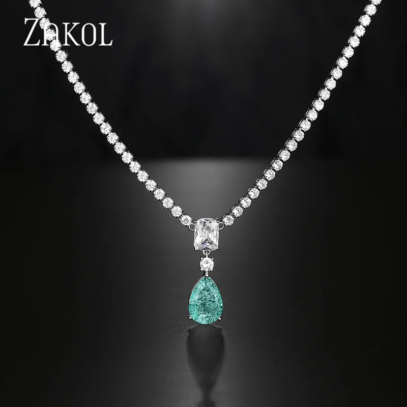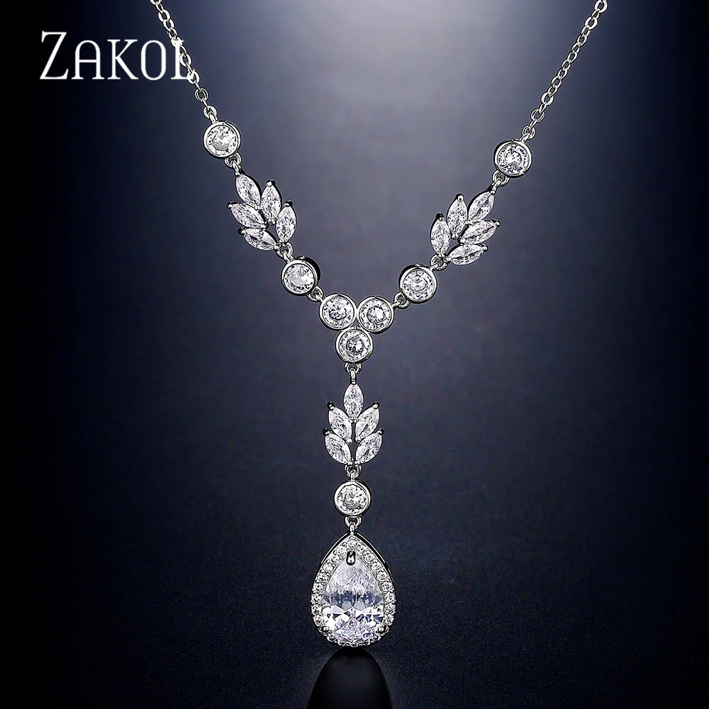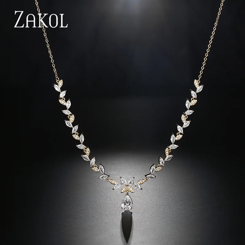ZAKOL-collares de lujo con forma de hoja de circonita cúbica para mujer, collares de lujo con corte de marquesa exquisito, accesorios de joyería para Boda nupcial y fiesta.